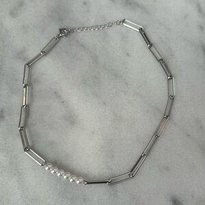 COPY - Silver Chain Link Pearl Choker Necklace Brand New