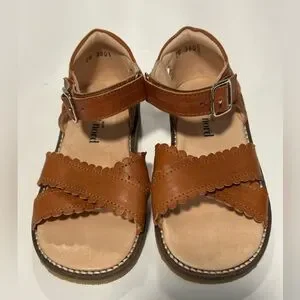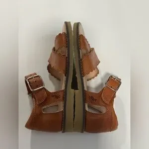 Petit Nord Little Girl’s Scalloped Leather Sandals Cognac Size EU 26