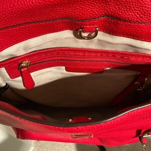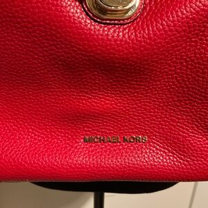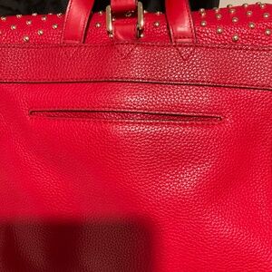 Pre-owned Michael Kors red leather backpack.  Gold hardware (studs, key, lock, feet).