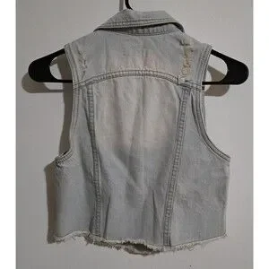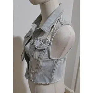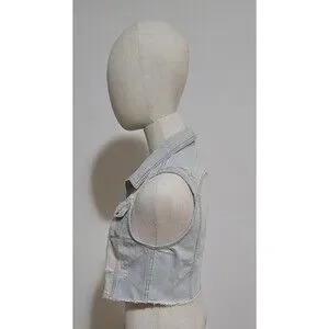 Denim Trucker Style Vest Womens Small Distressed Button Front Sleeveless Y2K New
