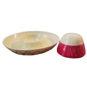 Rae Dunn Sombrero "Snack" Chip and Dip Platter. 13" x 7" H with lid. New In Box
