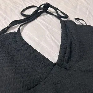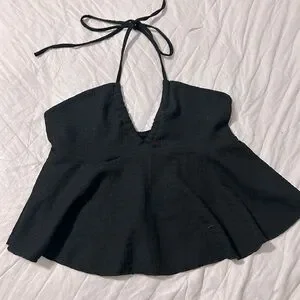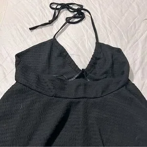 Flattering flowy black halter crop top. Textured with neck ties. No tags are on the shirt. Size Large