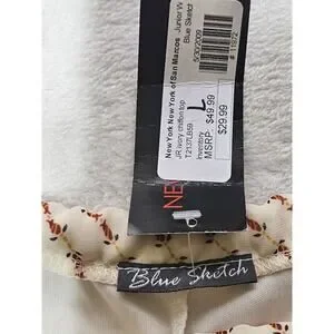 Blue Sketch Blouse Juniors Large Beige Sleeveless Sheer Floral Blouse Top