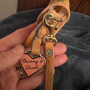 So cute & stylish vintage Dooney & Bourke Wristlet, orange color with DB colorful monogram design. Classy gold metal pink heart Dooney & Bourke purse charm. The strap is removable & is not the original strap, is a Dooney & Bourke strap though, & a little darker than the trim. You probably wouldn’t notice but I needed to point this out. Wristlet in good to excellent condition, may have a few marks on it. From a smoke free home.