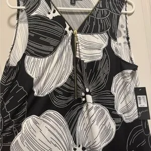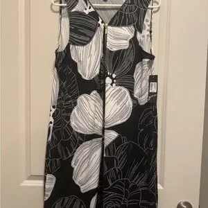 GNW Black and White Midi A-line Sleeveless V-neck Dress