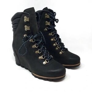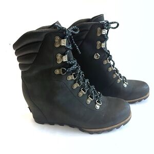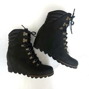 Sorel Conquest Waterproof Wedge Boots Leather Women's Black size 9.5 EUC