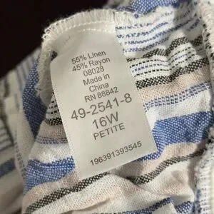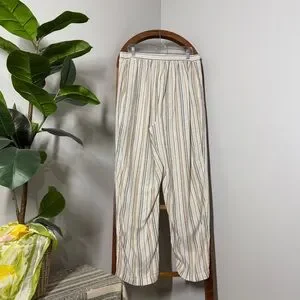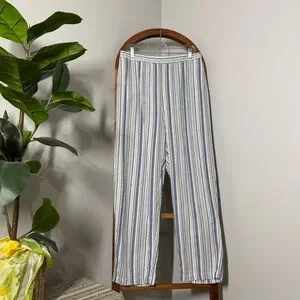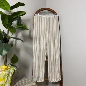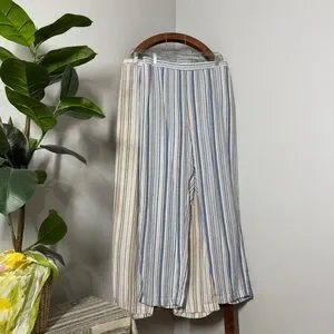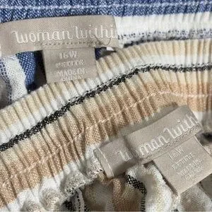 Plus size 16W PETITE blue tan white linen rayon blend striped wide leg pants from woman within. Pockets. Flat front and elastic on the back. In great preloved condition. Thank you for visiting my closet and supporting a small business. Check out the rest of my closet for similar styles and sizes! Bundle three items and save 15%