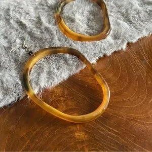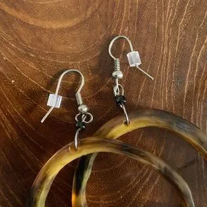 Handmade Bone Earrings with a tortoise type of coloring. Dangle earrings. Purchased from a vendor.