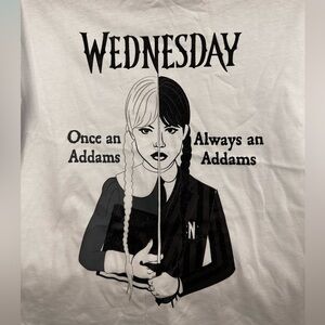Wednesday Graphic top t-shirt, size 11-12Y, brand C&A, New with tags. After popular show. 100% cotton. See pictures for details
