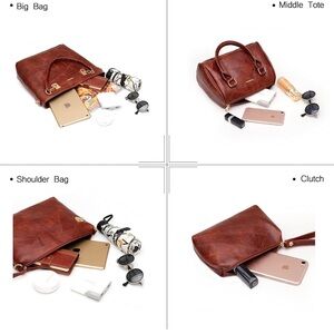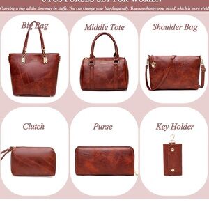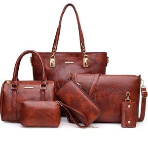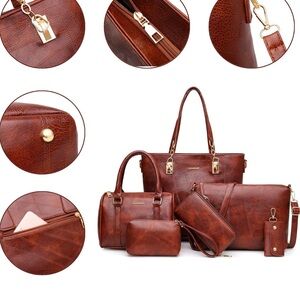 2E-youth 6pcs purse set designer handbags for women! Brown purse color matching design, interpretation of a simple sense of fashion. Multi layered interior design, you can easily in any situation.Durable large tote bag can hold 14 inch Laptop or tablet,A4 documents or books, and your favorite high heels.Satchel shoulder bag can hold coin purse,long wallet,sunglasses,umbrella,cosmetics and other items.2E-youth clutch purse can hold your keys,lipstick,and other little items;