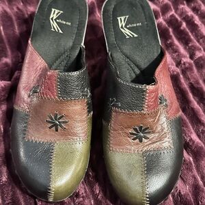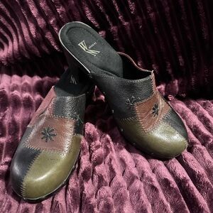 Step out in style with these unique White Mtn. Leather multicolor patchwork heeled clogs. Perfect for adding a touch of flair to any outfit. Size 6M