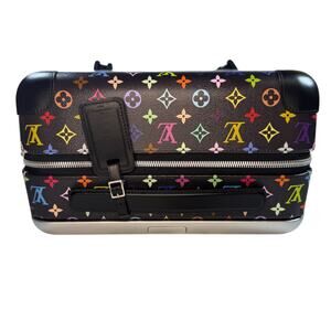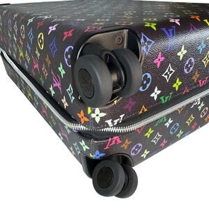 • Sold out limited edition Takashi Murakami 2025 collaboration rolling luggage in multicolor monogram print.