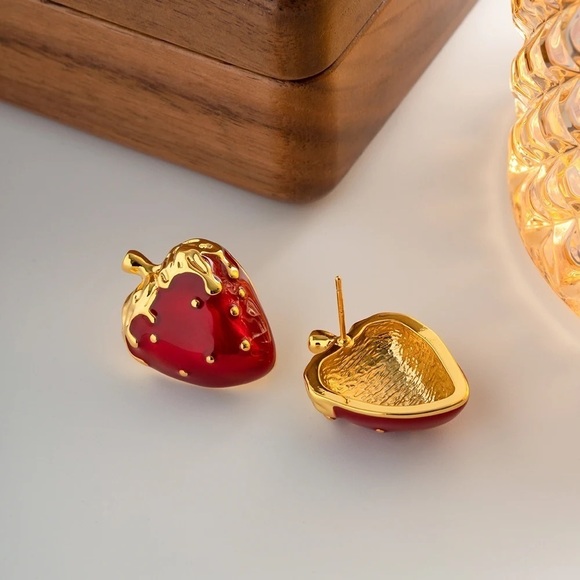 18K Gold Plated Romantic Strawberry Stud Earrings