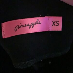 In a size extra small black with white stripe and pineapple logo across the back