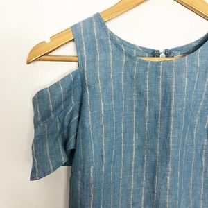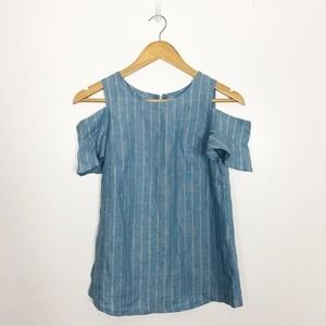 MOON RIVER Blue 100% Linen Cold Shoulder Blouse XS
