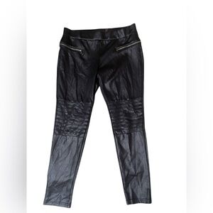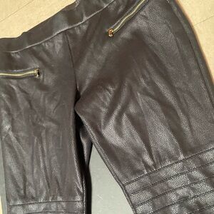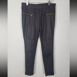 ANA Moto Pants Petite Women Black Gold Zipper Pull On Skinny Leg