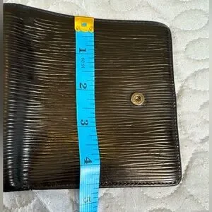 The Louis Vuitton Epi Porte-Billets Black Leather Compact Wallet is a stylish and versatile accessory suitable for both men and women. Crafted in France from high-quality leather, this wallet features a solid black color. The compact design includes credit card slots and a folding feature for convenient organization. The wallet also showcases the iconic Louis Vuitton logo as an accent, adding a touch of luxury to the overall design. Perfect for everyday use or special occasions, this wallet combines functionality with a touch of sophistication.