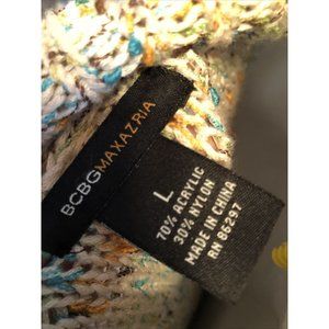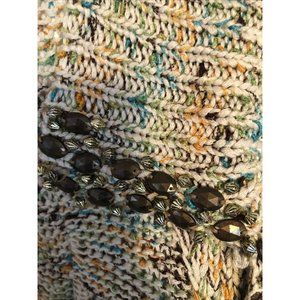 BCBG Large Long Cardigan Sweater Jeweled Collared Multi Color. Large buttons. Pockets.