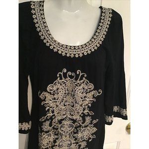 INC International Concepts Women's Dress Small Petite Black Embroidered.