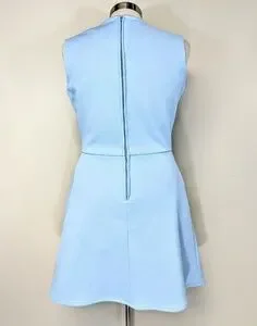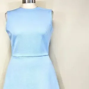 Thick stretch poly, fit & flare, hemmed above the knee, back zip, excellent condition. well made one of a kind! No size but measures a 6/M.