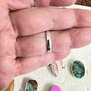 Natural serpentine gemstone, oval, silver plated, overlay stamp 925 ring size 6