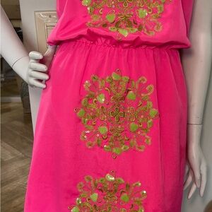 Lilly Pulitzer Pink w/Green Embellishments Jennifer Mini Slip Dress Size S