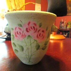 🌷🌼🪻 Beautiful Vintage Hand Painted Green Floral Solid Planter