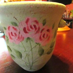 🌷🌼🪻 Beautiful Vintage Green Hand Painted Floral Planter