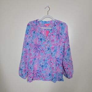 NWT Lilly Pulitzer Elsa top celestial blue seek and sea size small 100% silk