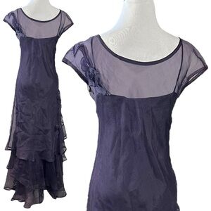 Vintage Tiar Silk Dark Purple Flower Fairy Maxi Dress Size Small WhimsyGoth USA