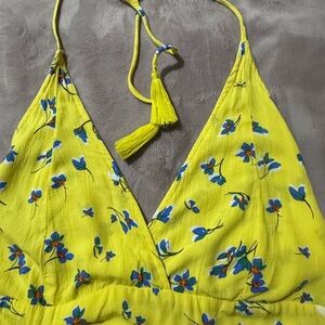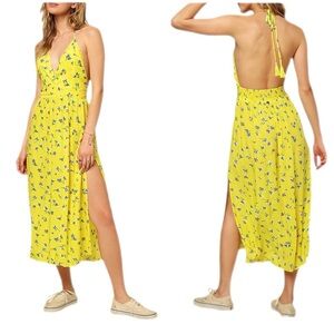 O'NEILL Women's Floral Spaghetti Strap Midi Cover Up Dress Bright Lemon/Size: XL