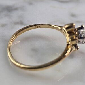 A WOMENS VINTAGE ESTATE 14K GOLD DIAMOND RING. THE RING IS A SIZE 6.5 AND WEIGHS 2.3g. THERE ARE ABOUT .37cts OF DIAMONDS IN THIS RING. CENTER DIAMOND IS ABOUT 0.25cts. THE LENGTH OF THE RING IS ABOUT 3/8". RING MAKES A BEAUTIFUL GIFT FOR THAT SOMEONE SPECIAL. ANY QUESTIONS, PLEASE ASK. BE SURE TO CHECK OUT MY OTHER GREAT ITEMS UP FOR SALE. THANK YOU