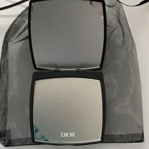 ⭐️NEW Elegant Dior compact. Features a sleek black design. Silver logo accent.