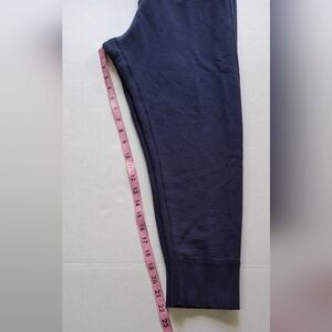 Nili Lotan Nolan Pant. Navy. Size XS. 100% Cotton. Distressing details. Relaxed in hips. Tapering through leg opening. Jersey combo pockets. Elastic drawcord. Side slash pockets. Non-functiol accent flaps at back. Ankle length. Gently used, barely worn. Measurements taken layed FLAT. Waist - 14 inches, Inseam - 22 inches, Length - 34 inches. Please ask any questions.
