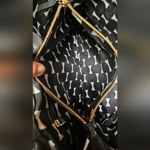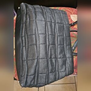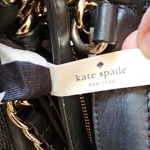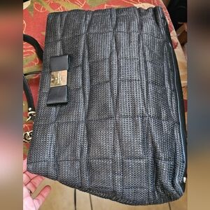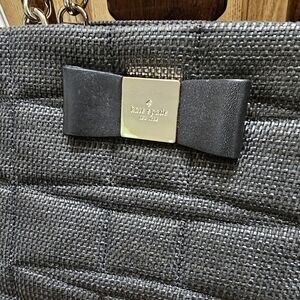 Excellent used condition Kate Spade Veranda Place Quilted Bow Straw Chain Strap Satchel Shoulder Bag Excellent used condition, no stains, peeling scratches, or callouts. MSRP: $348 Soft black leather leather, with woven canvas. Top magnetic snap button closure Measures 15 inches by 11 inches by 5 inches with 9 inch long handles. Silver-tone hardware, four feet to protect the bottom. Iconic Kate Spade Fabric lining inside zipper center section with two open top side pockets and one zippered pocket. Leather handles have silver chain accents. Comes with new unbranded dust bag. Ships from smoke-free and pet free home.