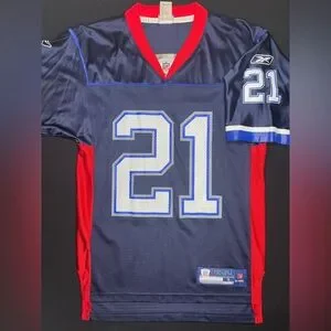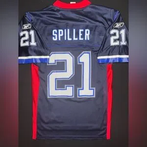 The product is a CJ Spiller #28 Buffalo Bills NFL Vintage Reebok Football Jersey for men in size small. This officially licensed blue jersey features Spiller's name and number, making it a great addition to any fan's collection. The jersey is designed for the regular season and is perfect for showing support for the Buffalo Bills on game days.
