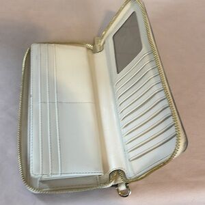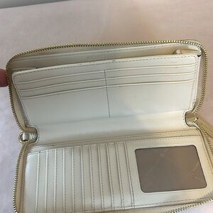 Very nice Michael Kors white jet st oversized travel wallet. Preowned but in very good condition with lots of life left. It does have a scratch on the binding that I tried showing in pictures. If you have any questions please message. Thank you very much