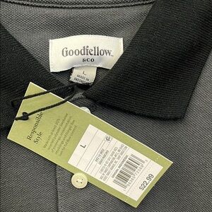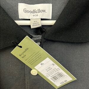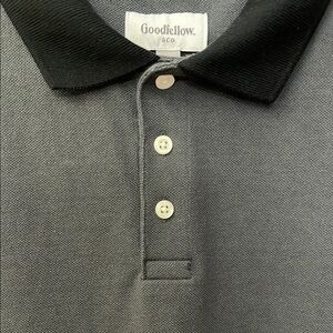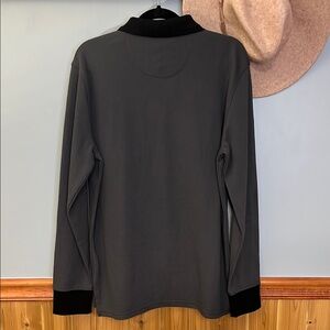 Brand new! Men’s grey cotton/poly blend material long sleeve polo shirt with black collar & cuffs. 3 buttons on chest, no pockets. Simple & smart!!