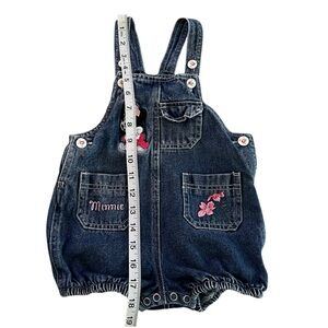 Disney blue shortalls are made from durable denim and feature a stylish bib front. The adjustable straps ensure a comfortable fit while the charming Minnie Mouse and floral embroidered decorations add a playful touch.