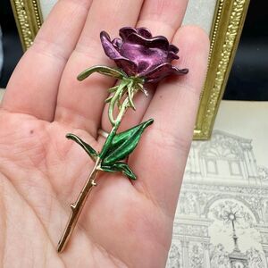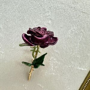 Purple Single Stem Rose Flower Brooch Lapel Royalty Enchantment Enchanted Era