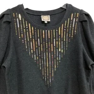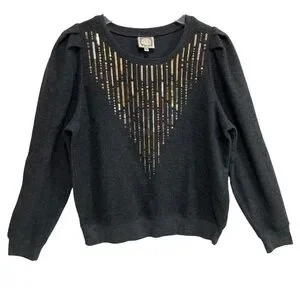 TruSelf Sweatshirt Top Charcoal Gray Sequin Gold Silver Copper Size Large