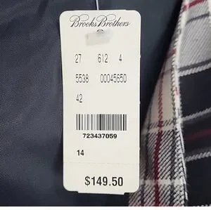 Beautiful and classy Brooks Brothers skirt with Brooks Brothers tissue paper, brand new BB box, sz14 new with tags, plaid white, black , burgundy. Gorgeous piece.