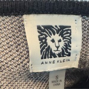Anne Klein Black Tan Gray Cream Ivory Plaid Cardigan Long Sweater Small S CT