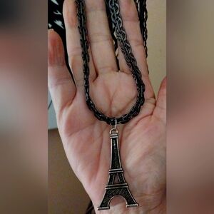 Elegant Eiffel Tower pendant on a chain. Perfect for adding a touch of Parisian charm. 24" Black stainless steel,hypoallergenic, ion plated,lead free,nickel free,waterproof, rust proof,lobster claw clasp. New with original packaging .