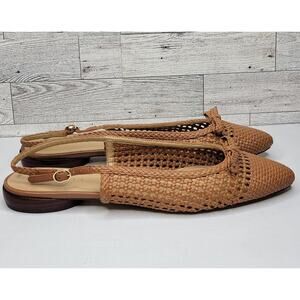 Talbots Eden Woven Slingback Flats Size 10M Beige Slip On Buckle Sandals Shoes