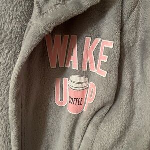 Bobbie Brooks soft cozy robe with Wake Up with hoodie