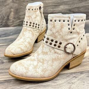 NIB Sofft Allene II 8.5M Western Chic Suede Antique Stud Bootie Boots Natural