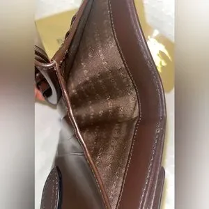 •Gold-tone buckle snap closure on the front flap and rear snap both function properly