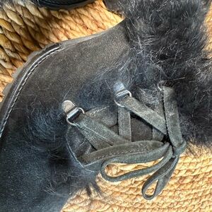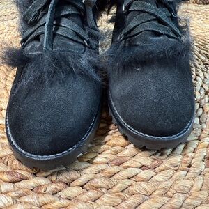 Coach Elegant Black Suede Mules Kristy 10 B Fur-Trimmed Women's Slip On Heels