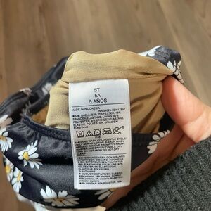 Stylish one-piece swimsuit with a floral pattern. Features a black base with white daisies. Perfect for beach outings.